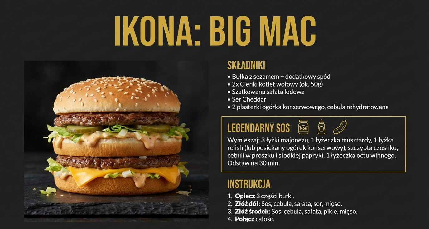 Poznaj pilnie strzeżone sekrety smaku 12 kultowych burgerów, od klasycznego Big Maca po sezonowego Drwala, i odtwórz je idealnie we własnej kuchni.